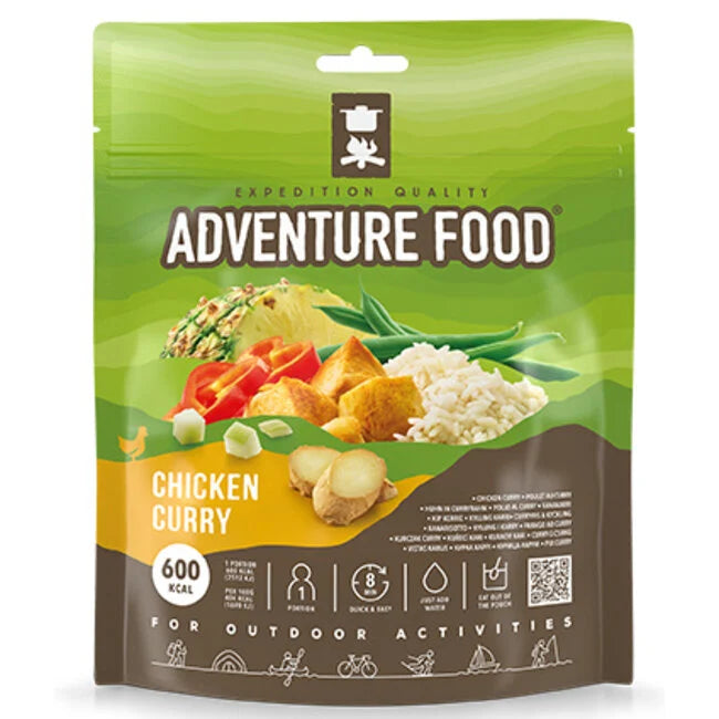 total energy 600 kcal (2512 kJ) net weight 148 g Storage life 48 months Preparation 1. Open pouch at tear notch. Unfold bottom. Remove Oxygen Absorber. 2. Add hot water up to line. 3. Stir well. 4. Close zipper. Allow to stand for 8 minutes. 5. Stir again. 6. Eat out of the pouch.