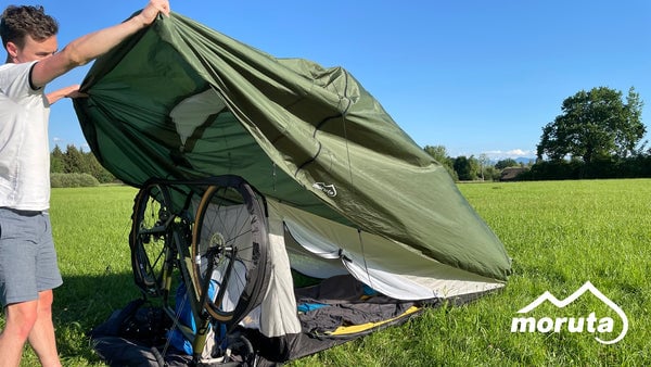 The moruta tent is probably the world's best bike tent. It is made for adventurers who prefer a small pack size, low weight and highest quality. The set up is easy and fits most bikes on the market - you can also set it up with trekking poles.