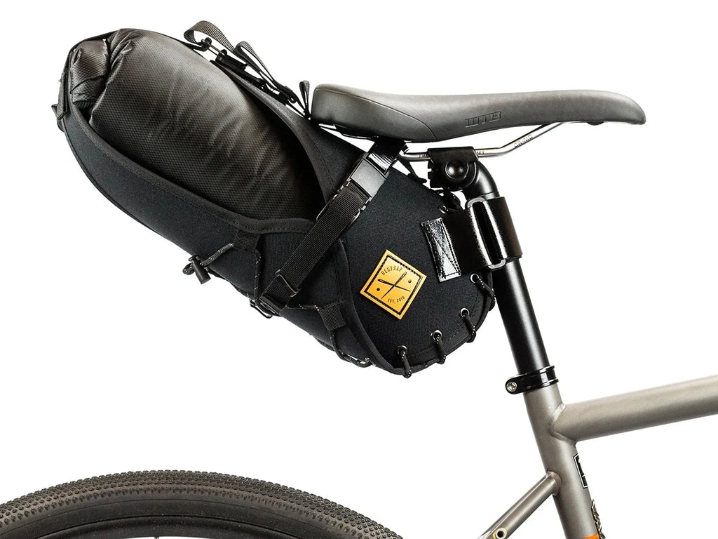 Part of the carry everything range, the rackless saddle bag connects securely to your seatpost for bike packing, touring or commuting. With no mounts or screws, the bag attaches in seconds to any bike.