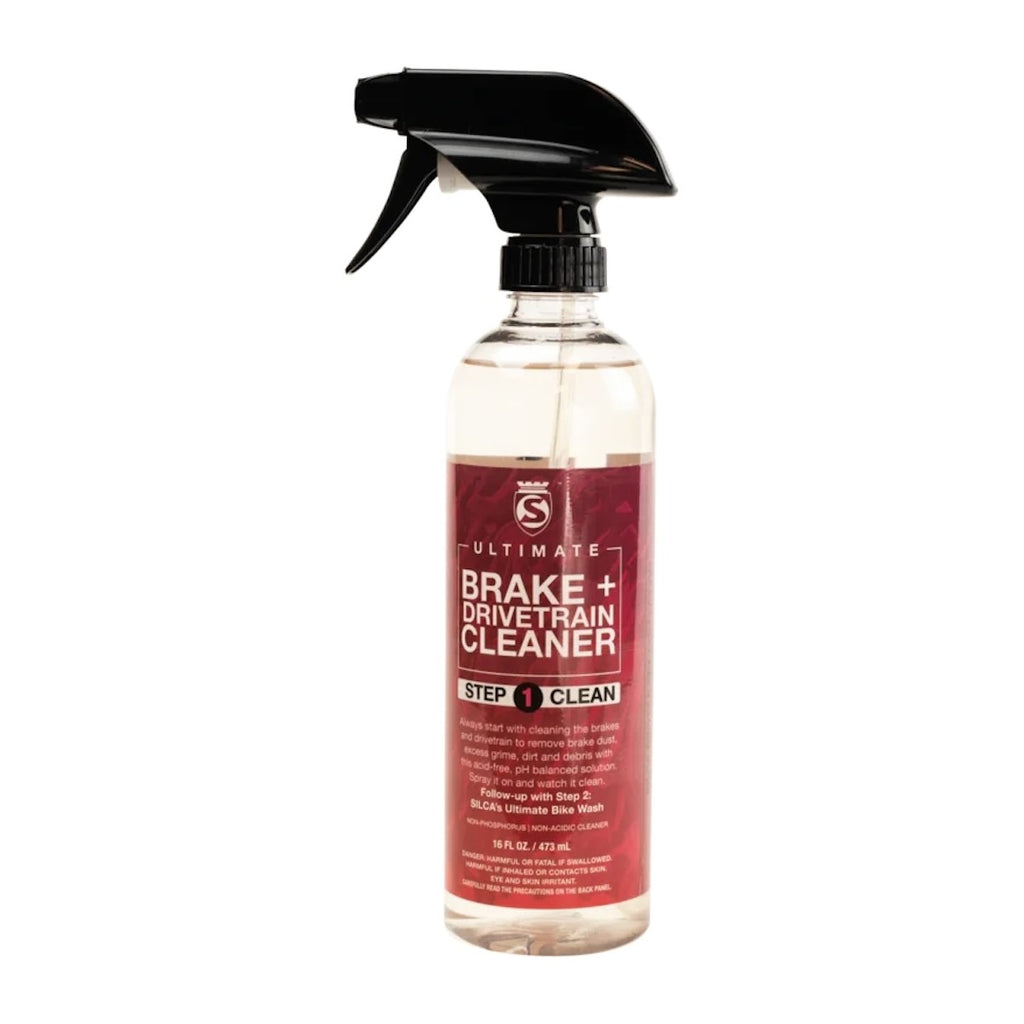 Ultimate Brake + Drivetrain Cleaner is a 3 minute process targeted at brake dust as well as road grime and oils. Simply spray onto brakes and drivetrain and watch the magic as the formula turns bright red, capturing and converting oils and grime as it runs off. Rinse Well.