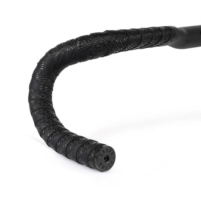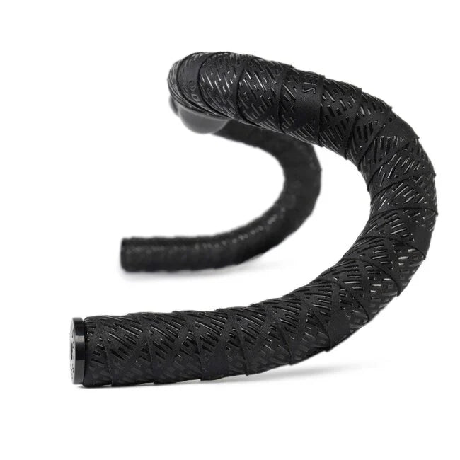 TAB bar tape mixes a strong and breathable microfiber backing with a grippy and stylish silicone print providing excellent grip in all conditions. Available in a standard thickness and in an extra thick version with a silicone gel adhesive strip that offers more comfort. Screwed bar ends included.